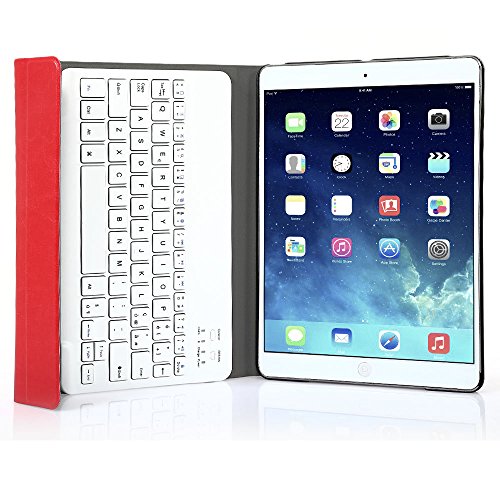 Besmall Tastiera Bluetooth Wireless Rimovibile con Cavo Ricarica USB per Apple iPad Air 1 iPad 2018/2017 9.7 pollici + Custodia Cover Protettiva in Pelle Sintetica - Rosso
