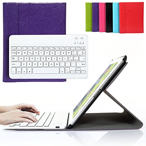 Besmall Tastiera Bluetooth Wireless Rimovibile con Cavo Ricarica USB per Apple iPad 2/3/4 + Custodia Cover Protettiva in Pelle Sintetica-Viola