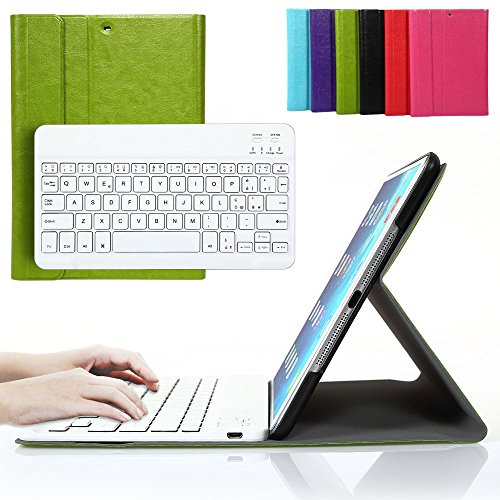 Tastiera per ipad air 1: La tastiera vi sembrera' di digitare su una vera tastiera per computer grazie ad impiego di plastica dura, rendendo esperienza di digitazione e scrittura molto piacevole,Besmall Tastiera di Lingua Italiana Bluetooth Wireless Rimovibile con Cavo Ricarica USB per Apple iPad Air 1 air1 (numero modello A1474/A1475)+Custodia Cover Protettiva in Pelle Sintetica -Verde-XLYP23F-IG