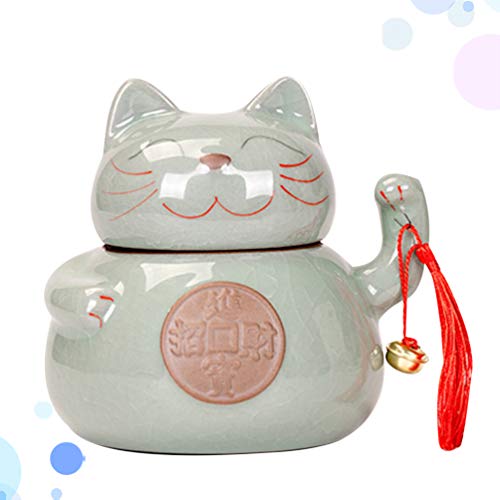 BESPORTBLE Barattolo da tè in ceramica con gatto della fortuna giapponese Maneki Neko barattoli per tè in porcellana portafortuna, gatto fortunato, per la casa, cucina, L