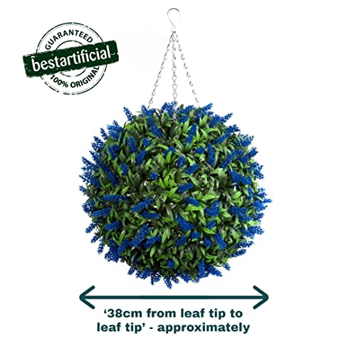 Best Artificial Sfera di lussureggianti fiori blu lavanda e foglie lunghe, arte topiaria, 40 cm