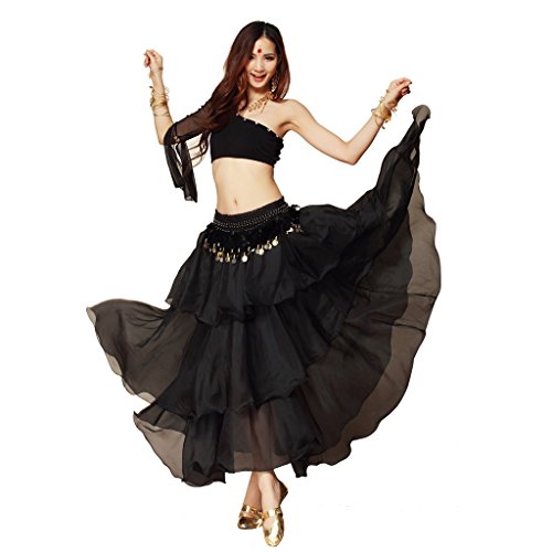 Best Dance da donna, senza spirale Top per la danza del ventre, 3 strati, gonna in paillettes-Set sciarpa, da agganciare in vita nero