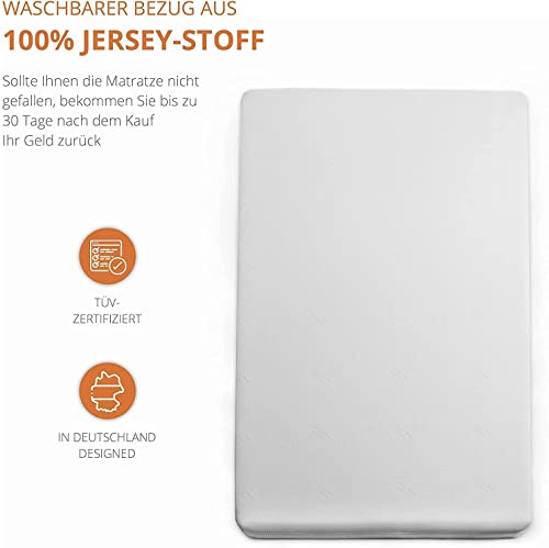 Altezza del nucleo: circa 10 cm. Altezza totale: circa 11 cm, tessuto testato contro la presenza di sostanze nocive secondo lo standard Öko-Tex 100. Alta durezza N25 per la migliore elasticità del materasso in schiuma.