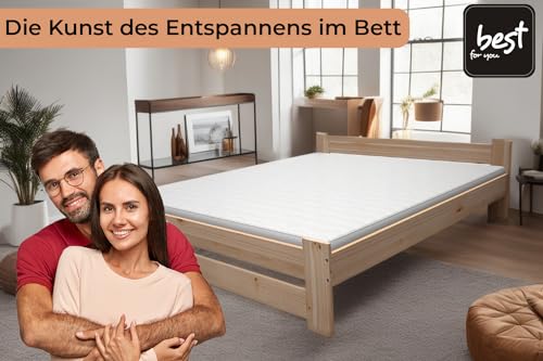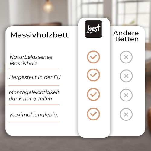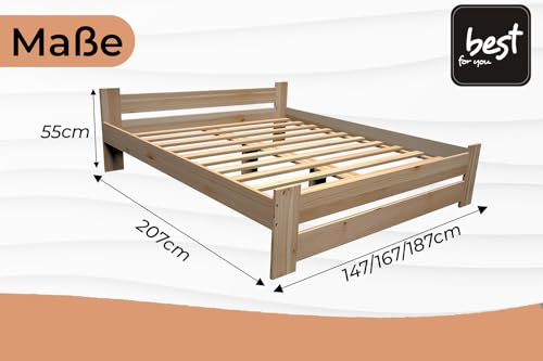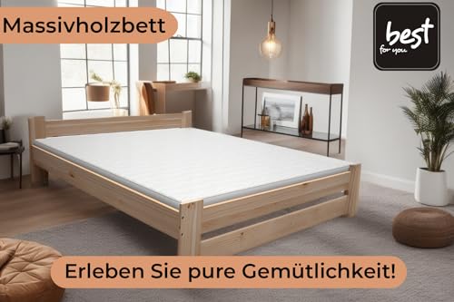 Best For You Letto matrimoniale in legno massiccio futon, letto matrimoniale in legno massiccio naturale, letto rialzato, 100% legno naturale, con testiera e rete a doghe, diverse misure (180 x 200