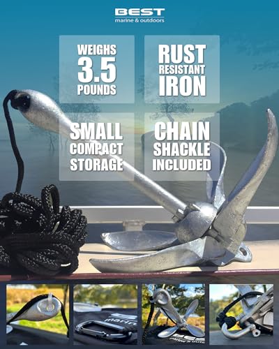 Best Marine Accessori di Ancoraggio per Kayak per Kayak da Pesca, Canoa, Jet Ski, Paddle Pad SUP, Piccole imbarcazioni e Kit di Trolley. 1.6KG Ancoraggi per Barche Pieghevoli con Corda Marina 12M.