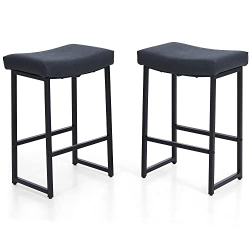 Best Villa Set di 2 sgabelli da bar, stile moderno, altezza 61 cm, in ecopelle imbottita, facile da montare per isola della cucina, sala da pranzo, bancone, nero