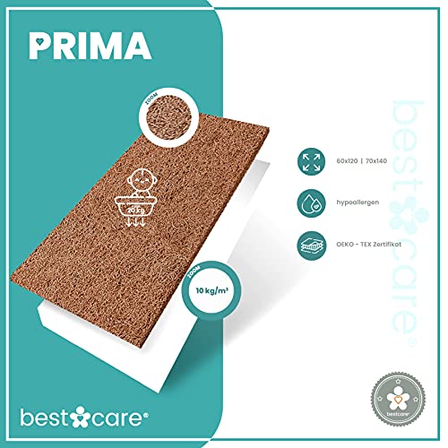 BestCare Materasso per bambini Prima in fibre vegetali | 70x140x10cm | schiuma naturale | lavabile aloe vera copri | nessun odore chimico, nessun lattice | per neonati | Standard 100 OEKO-TEX