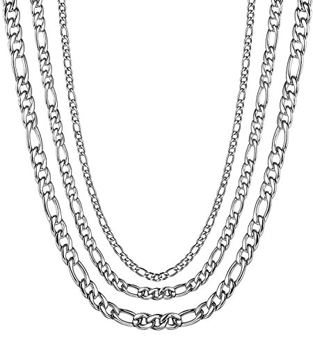 BESTEEL Gioielli in Acciaio Inossidabile 3 PCS Collana Uomo Donna Catena di Figaro Collane Lunghe 51-71cm