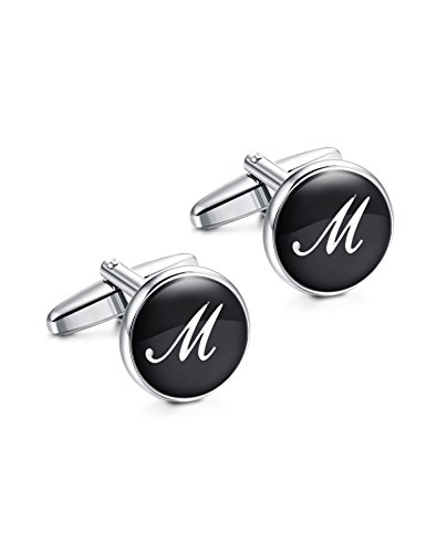 BESTEEL Gioielli Gemelli Classico Iniziale Incisa per Uomo Alfabeto Lettera Nero Camicia Matrimonio Aziendale Formale M