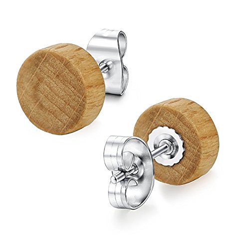 BESTEEL Orecchini in legno in acciaio inossidabile da 4 paia per orecchini da donna con borchie Orecchini da orecchio piercing 6-12MM