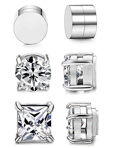 BESTEEL 3 Paio Orecchini magnetici in acciaio inossidabile per uomo Donna Orecchini a bottone Orecchini a clip Zircone non piercing 6-8MM