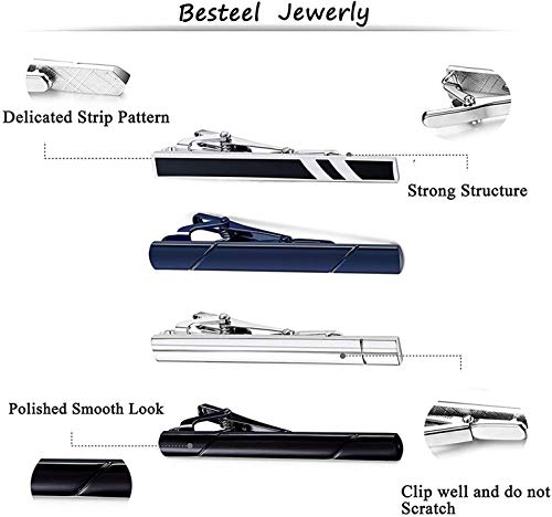 BESTEEL 8 Pezzi Clip di Cravatta per Uomini Clip di Cravatta Bar Clip di Cravatta Nera di Nozze di Nuovi Affari Scatola Regalo, Senza gemma