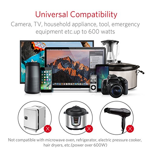 è possibile utilizzarlo per far funzionare dispositivi fino a 150 Watt, come laptop, notebook, macchina fotografica, lettore DVD, console di gioco, ecc.