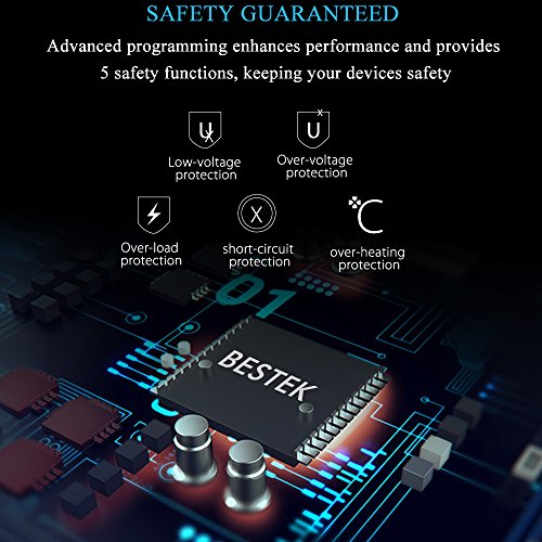 Ampia applicazione: collegare direttamente in qualsiasi presa accendisigari 12 V. Convertire DC a prese di corrente e 4.8 A Dual USB porte di ricarica, idea per l' uso su vacanze, funziona bene in viaggio, in campeggio o ovunque DC to AC Inverter è necessaria