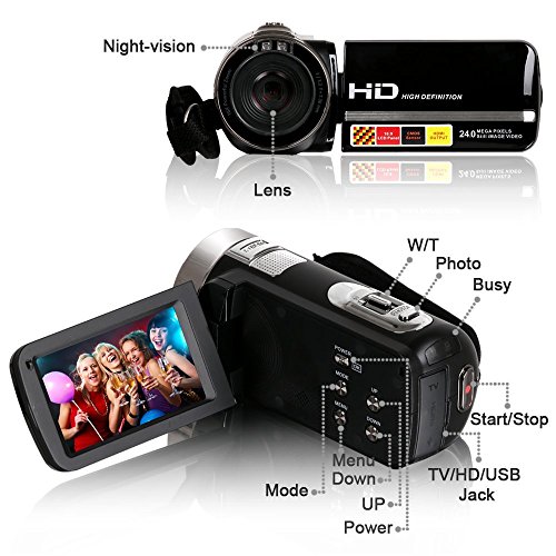 Questo HDMI Video Camcorder è con 24,0 Megapixel, pannello 3.0 TFT LCD touch, fotocamera con zoom 16x, attaccare con obiettivo grandangolare e Macro semplicemente godersi il divertimento della fotografia a prezzi accessibili (NOTA:. Obiettivo macro può essere staccato ad un uso distinto, non consiglia utilizzare con questa videocamera, Miglior uso con il telefono)