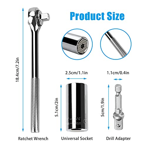 BestFire Chiavi a bussola Set di chiavi a bussola universali con adattatore per trapano elettrico per tutti i tipi di dadi da 7 mm a 19 mm, set di chiavi a bussola versatile 3 in 1