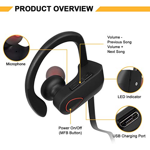Bestfy auricolari Bluetooth 4.1 stereo con microfono senza fili interno orecchio di Sport per iPhone, Android, Windows Smartphone e altri dispositivi Bluetooth