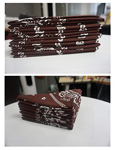 Bestgift 100% cotone, 12 pezzi, bandana per lo sport e il tempo libero, foulard per capelli, collo, sciarpa per uomo e donna marrone Taglia unica