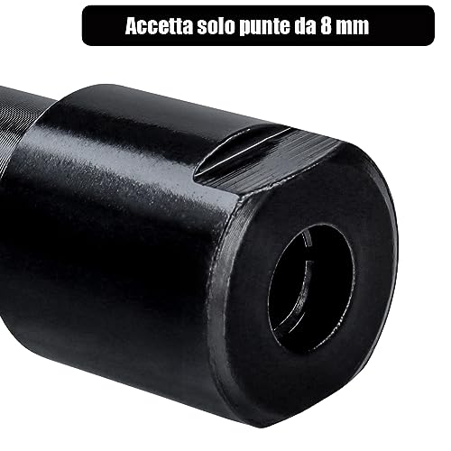 Utilizzabile con qualsiasi punta da 8 mm per offrire l'altezza della fresa necessaria e la praticità.