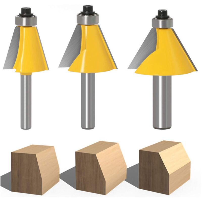 Caratteristiche: Tecnologia di smerigliatura ad alta precisione. Struttura semplice, facile da installare e utilizzare. Migliora il tuo lavoro: prodotti di lavorazione più efficienti e durevoli. Il design del meccanismo ad alta precisione offre un funzionamento preciso e una lunga durata. Un buon modo per definire giunti ad angolo variabile con lo stesso strumento. La profondità di taglio del lato femmina determinerà l'angolo che può essere raggiunto nella guarnizione. Specifiche: Colore: giallo. Tipo: 15 gradi, 22,5 gradi, 30 gradi, 3 pezzi. Materiale: acciaio 45 #. Punta carburo: YG8. Diametro dell'asta: 8 mm. Uso: legno. Contenuto: 3 punte smussate.