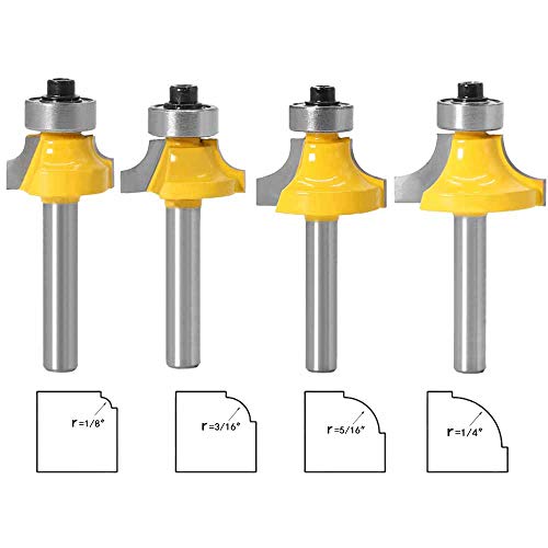 1. Set di 4 punte versatili arrotondate: 1/8" 1/4" 5/16" 1/2" radio, diametro del cuscinetto 1/4 per router per strumento di intaglio Trimm.