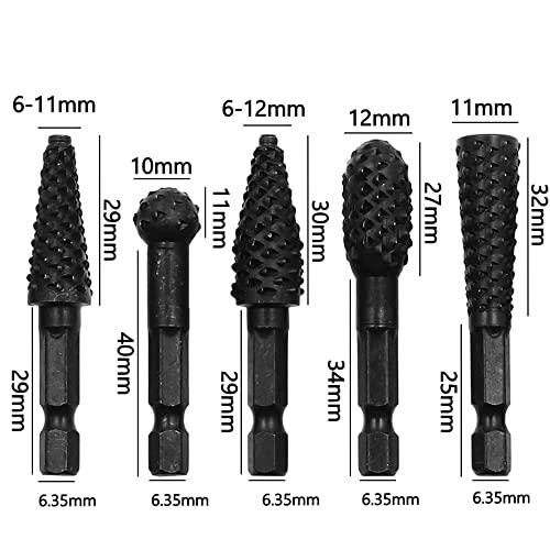 3.La confezione include 5 forme: sfera, ovale, cilindro, cono grande, cono piccolo, adatto per la maggior parte dei trapani elettrici e senza fili