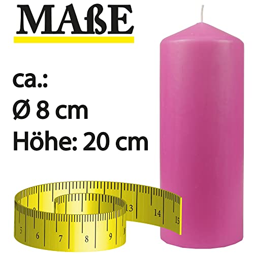 Bestgoodies Candele a pilastro, diametro 8 cm x 20 cm (confezione da 4) rosa, lunga durata, prodotte in UE, candele a blocchi di cera