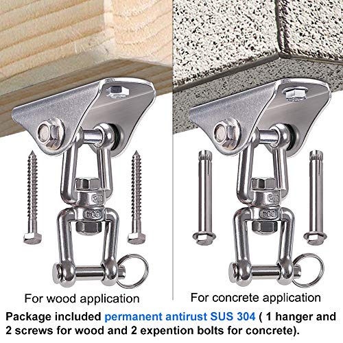 Besthouse Gancio per Soffitto con SUS304 Acciaio Inossidabile, Gancio per soffitto Suspension,4 Viti per Calcestruzzo e Legno, Yoga, Amaca, Sacco da Boxe, capacità di Carico Fino a 400Kg