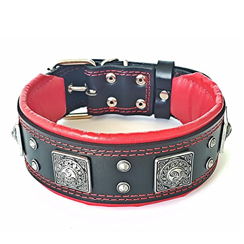 Bestia Eros Genuine Leather Dog Collar, Large Breeds, Cane Corso, Rottweiler, Boxer, Bullmastiff, Dogo, Quality Dog Collar, 100% Leather, Studded, L- XXL Size, 2.5 inch Wide. Padded. Made in Europe!
