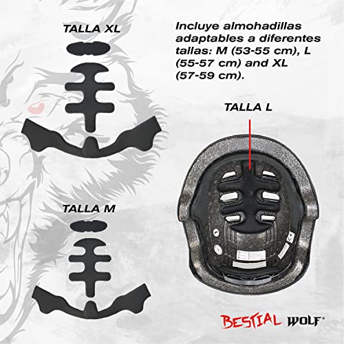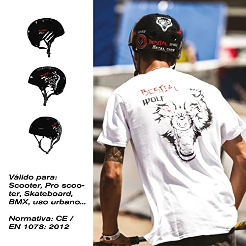 Bestial Wolf | Casco | Skateboard | Monopattino Bambino Freestyle | Skate | Monopattino acrobatico | BMX | Omologato CE | Sport e Outdoor | Regolabile Unisex | 8 a 99 anni (BLACK)