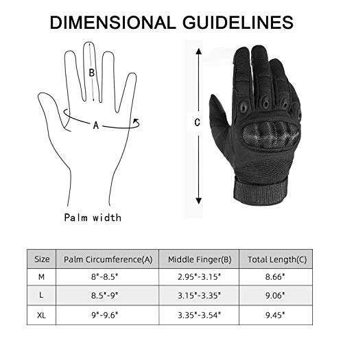 BESTKEE Guanti da moto da uomo, guanti tattici regalo con cintura in nylon e moschettone, guanti da dito pieno, protezione per caviglia rigida per airsoft, militari, paintball, moto, bicicletta, sport