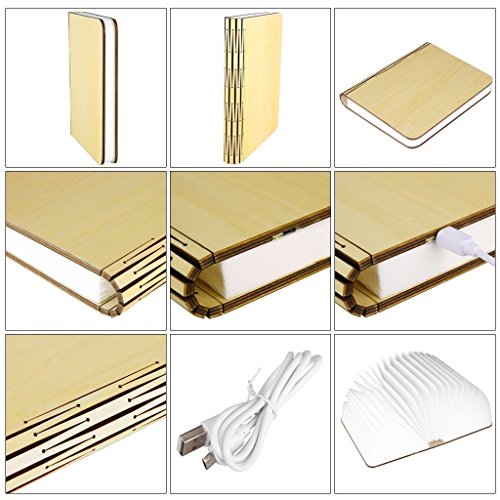 Bestland - Lampada a LED a libro, in legno, decorativa, ricaricabile, pieghevole, con 3000 mAh, al litio, 500 lumen, luce bianca calda