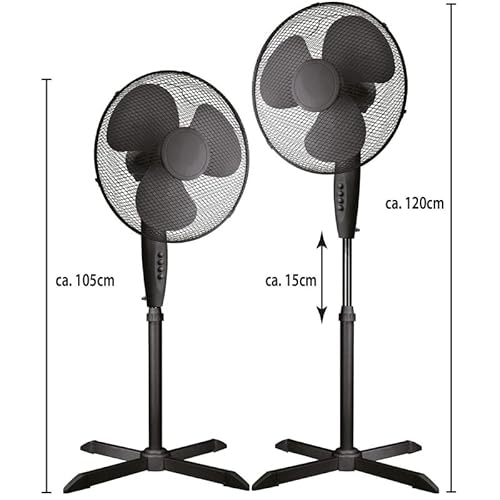 Bestlivings Ventilatore a piantana Ø 40 cm con oscillazione (nero) - Ventilatore 45 W, altezza regolabile 105 - 125 cm - Ventilatore a torre 3 velocità