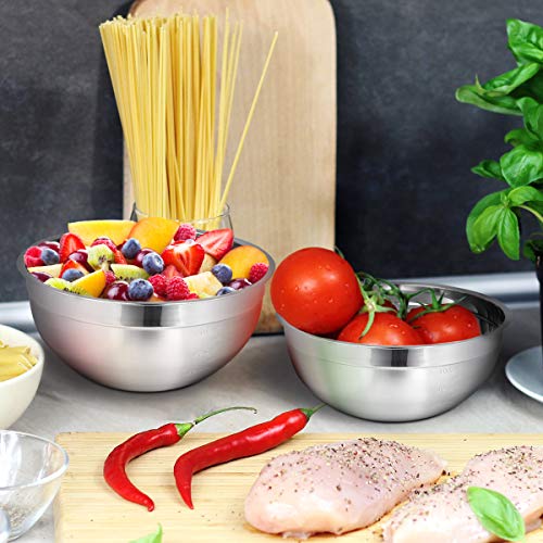 BESTO nzon Durable 304 in acciaio inox ciotole per servire, forno, cottura Accessori, Nesting set di 3 contiene 1 L, 3 L, 4 L