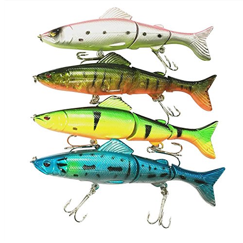 Bestok Esche da Pesca Esca Dura Morbida di Mare con Acuto Affrontare Triplo Gancio Manovella Esche (4Pcs 12.5cm Segmento Esche)