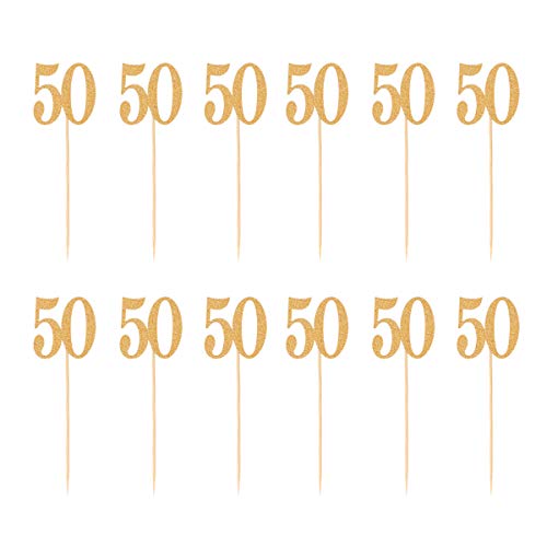 BESTONZON, Decorazioni Glitterate per Cupcake con Numero 50, per Feste di Compleanno, 24 Pezzi (Oro)