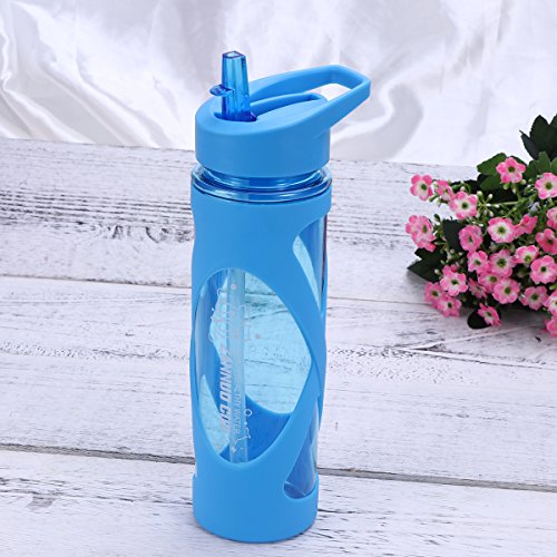Bestonzon 580 ml Tritan bottiglia borraccia in plastica con cannuccia a tenuta sport potabile contenitore (blu)