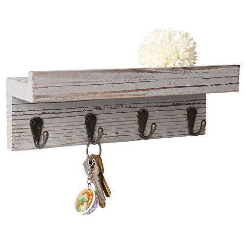 BESTOOL Mini portachiave in legno, organizer per chiavi, organizer da parete con 4 ganci in metallo (grigio)