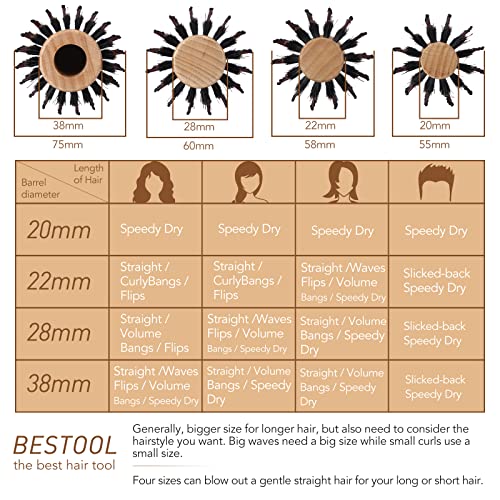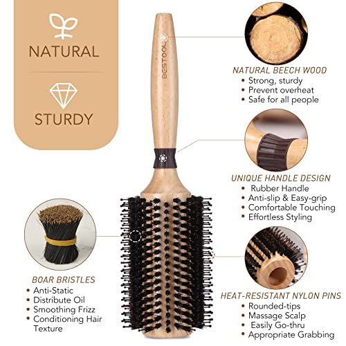 BESTOOL Spazzola rotonda per asciugatura, setole di cinghiale con perni in nylon Spazzola rotonda per capelli, spazzola rotonda professionale per lo styling per donne e uomini (Barrel 38mm)