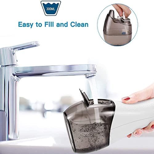 Grande serbatoio dell'acqua da 300 ml a prova di perdite: questo pulitore per denti ha un serbatoio d'acqua extra grande che fornisce abbastanza e ininterrotto. Grazie al serbatoio aperto e al design staccabile, è molto più facile pulire il calcare all'interno del serbatoio di irrigazione. Il design interno a tenuta stagna ha un brevetto esclusivo, che offre un'esperienza sicura e confortevole.