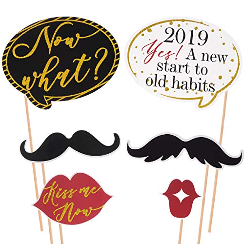 BESTOYARD 2019 Capodanno Photo Booth Props Kit Puntelli Divertenti per Capodanno con Bastoncini di bambù Glitter Photo Booth Puntelli per Capodanno Decorazioni per Feste - 29 Conte
