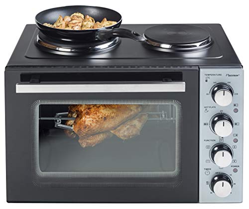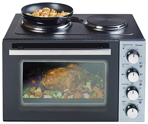 Bestron Cucina compatta con forno e doppia piastra, Crispy & Co, 3200 Watt, Nero