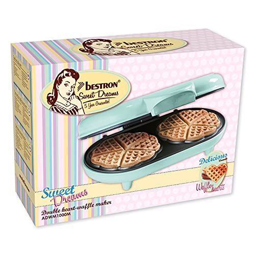 BESTRON Double Waffle Iron for Classic Heart Waffles Waffle Maker with Non-Stick Coating, 1000 Watt, Mint