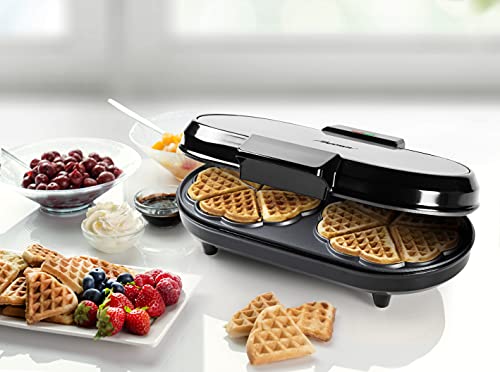 BESTRON Piastra doppia per waffle a forma di cuore classica con vaporiera e rivestimento antiaderente, 1200 Watt, colore: argento