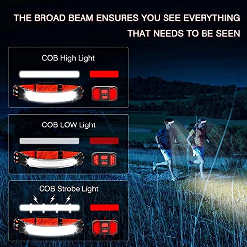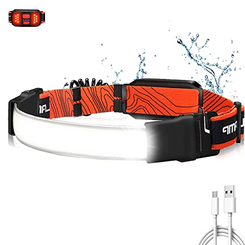 BESTSUN Torcia frontale a LED ricaricabile, faro a fascio largo con fanale posteriore rosso 3 modalità di illuminazione Faro leggero da lavoro impermeabile per pesca, campeggio, escursionismo, corsa