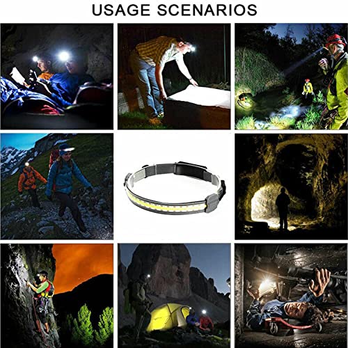[Headband Light & 3 Modes] - Questa torcia frontale COB offre un'illuminazione grandangolare di 210 ° invece di illuminare solo una piccola area di fronte a te, illumina facilmente l'intera stanza o concentrati su oggetti a 1000 piedi di distanza! Ci sono tre modalità di illuminazione: luce alta, luce debole, strobo. Adatto a una varietà di scenari per soddisfare le tue diverse esigenze.