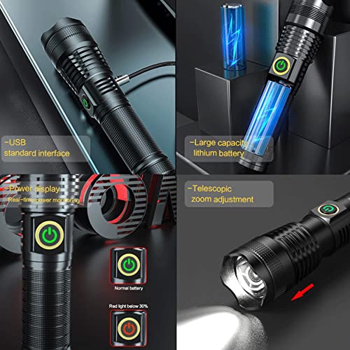BESTSUN Torcia LED XHP70, torcia portatile ricaricabile ad alta potenza da 12000 lumen, torcia impermeabile zoomabile, torcia a 5 modalità per campeggio, escursionismo, pesca, caccia