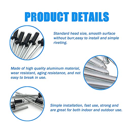 【AMPIA APPLICAZIONE】 Questi rivetti sono perfetti per l'applicazione in automobili, navi, aerei, condotte, ascensori, strumenti, mobili ecc, ideali per unire materiali come lamiere, plastica, gomme e laminati. Sono molto resistenti e sono ideali sia per uso interno che esterno.
