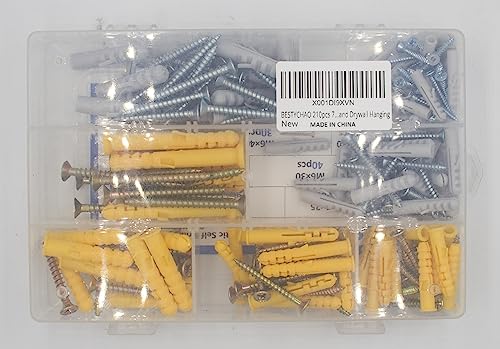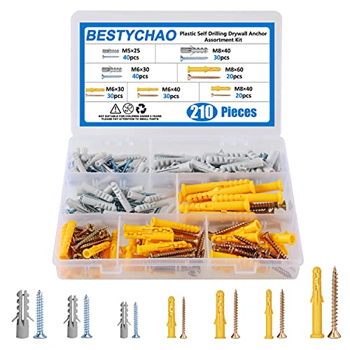 BESTYCHAO Set di Viti e Tasselli a Muro, 210 Pezzi 7 Taglie Ancoraggio a Parete Cavo in Plastica con Kit Assortimento di Viti per Muro a Secco Appeso e Montaggio M5 M6 M8