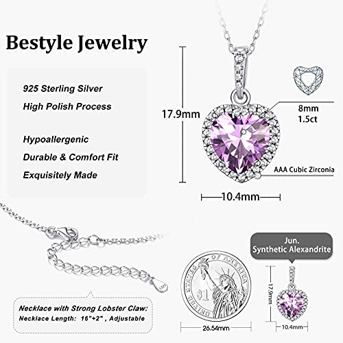 Bestyle Collana in Argento Sterling 925 Collana con Cuore Collane con Pietre di Nascita Giugno Alessandrite Regalo per Ragazza San Valentino Confezione Regalo